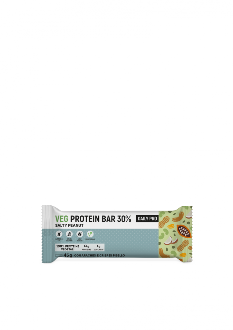 Barretta 45g - Gusto Salty PeanutBarretta proteica vegana a base di proteine da pisello e colza, due fonti proteiche Vegetali ad alta digeribilità per sostenere la normale alimentazione quotidiana in maniera versatile e bilanciata.
